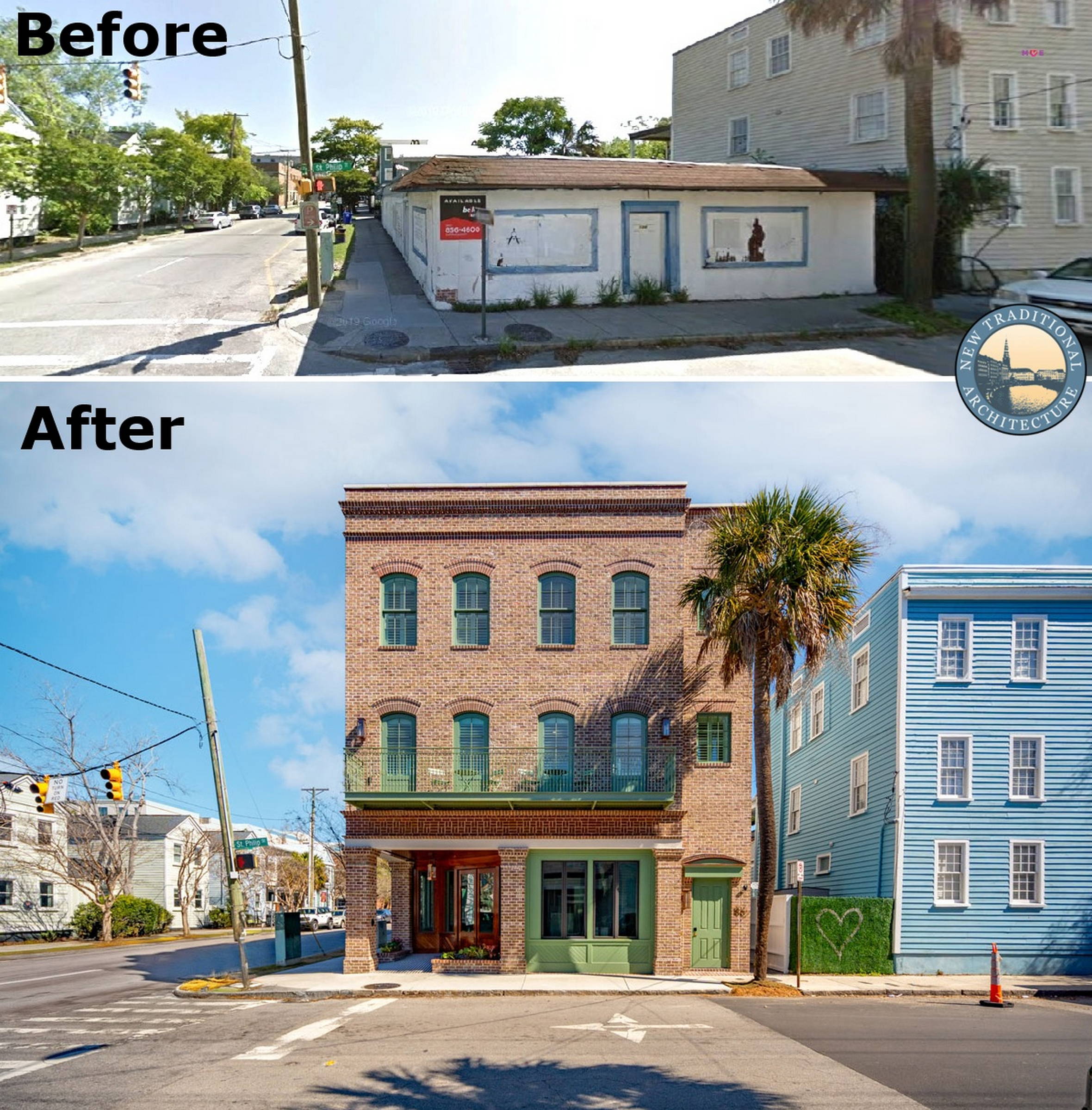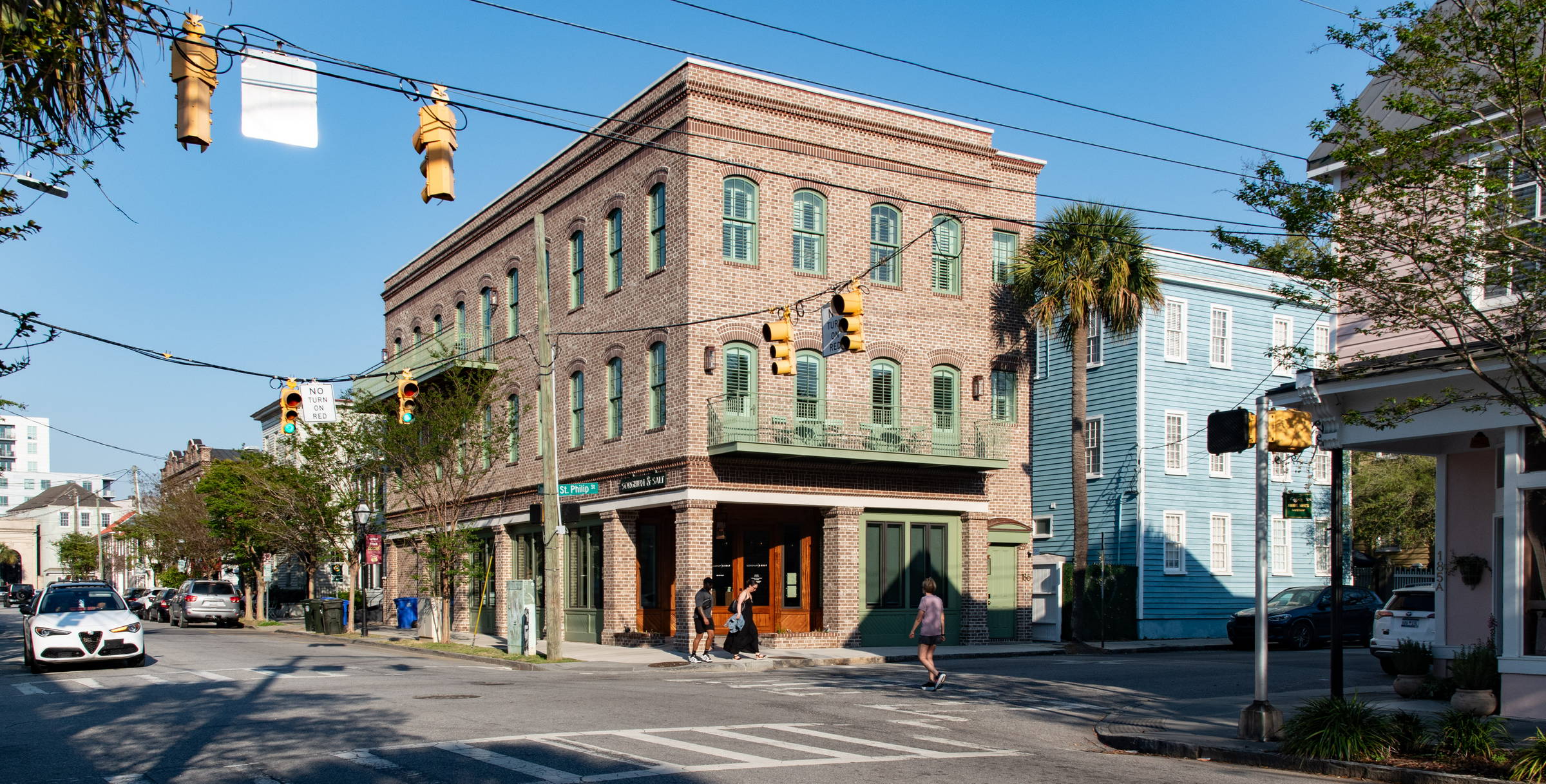 This is a new mixed-use structure for a prominent corner lot in downtown Charleston. Designed in collaboration with AJ Architects and CKC Properties, with Andrew Gould serving as the designer of the exterior facade composition and detailing. Constructed in 2024.