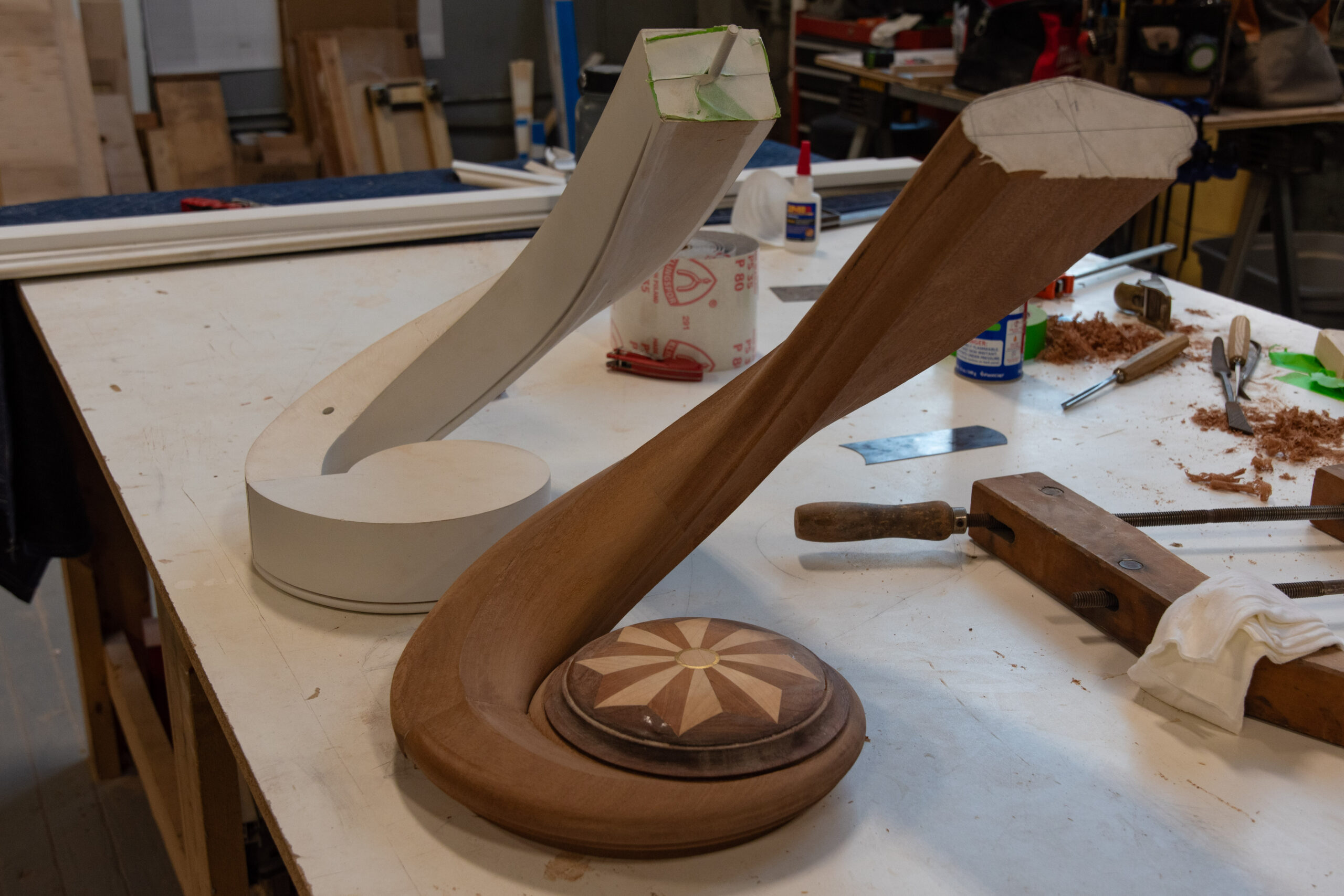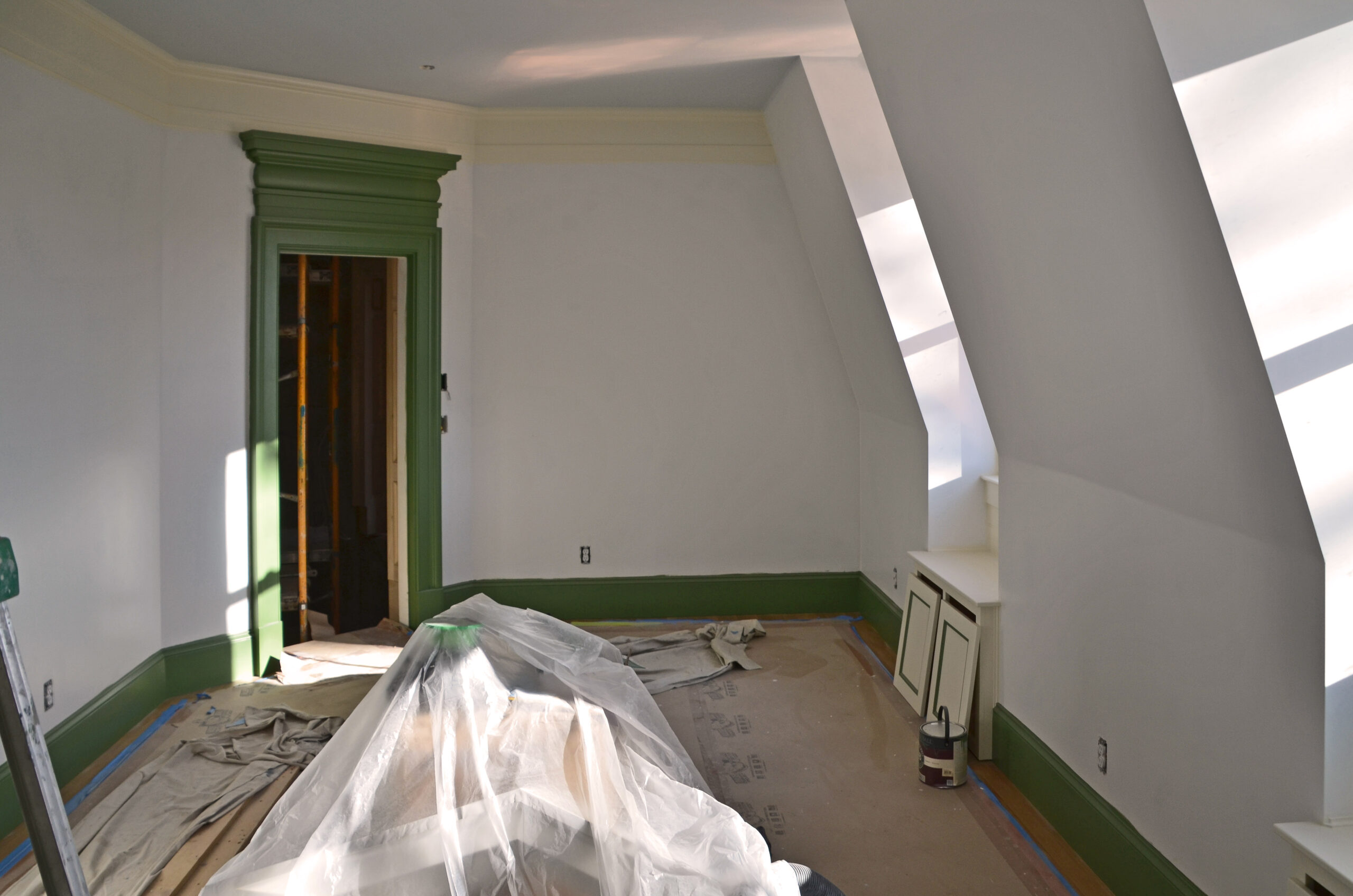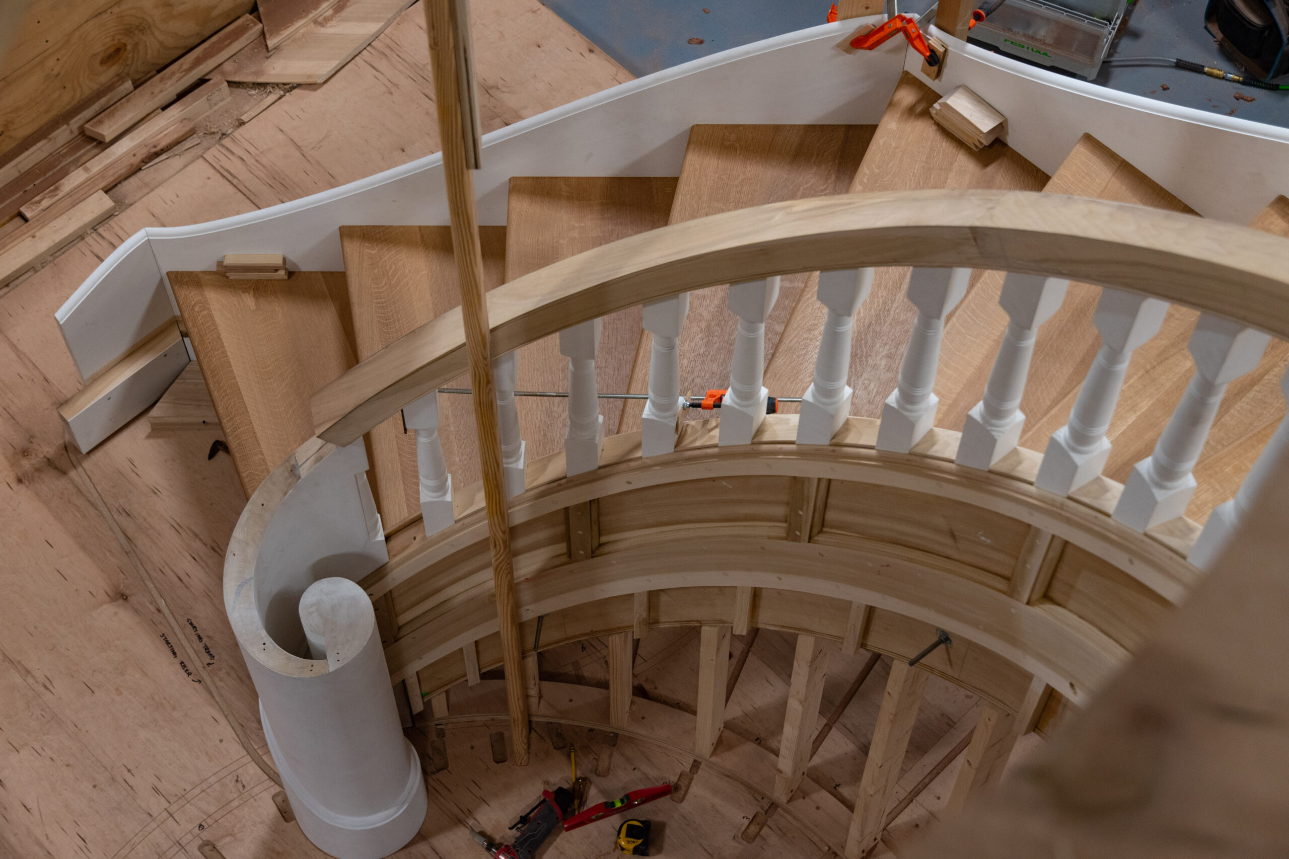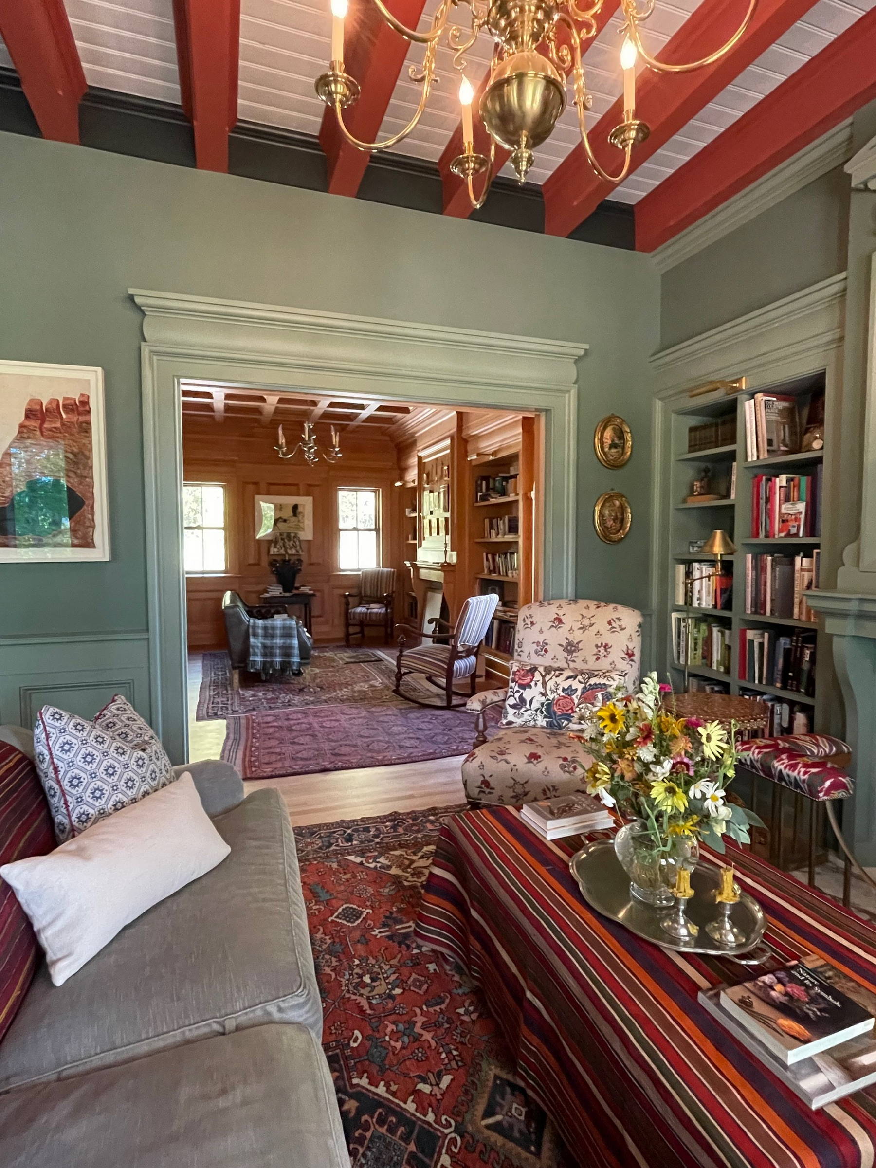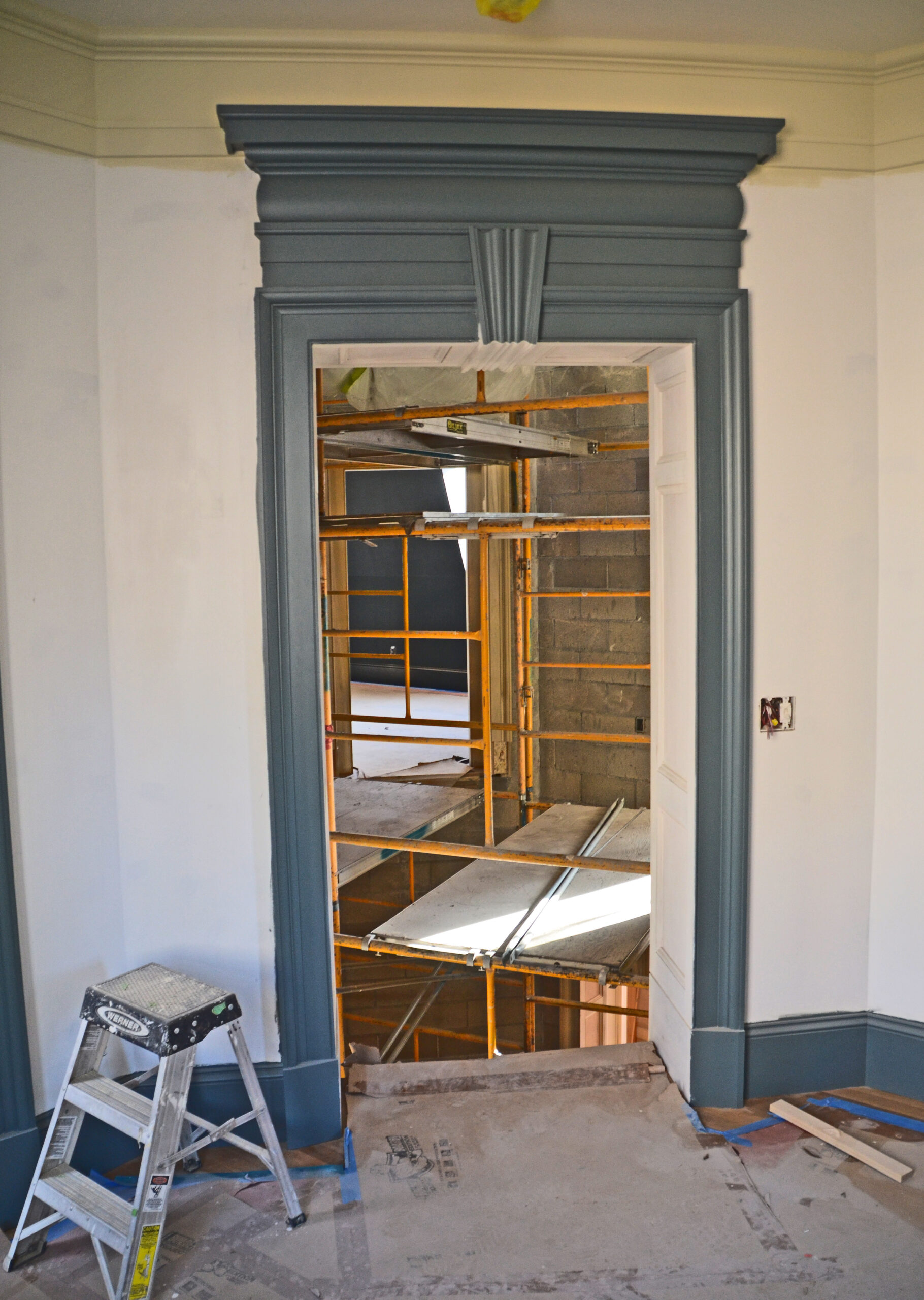 The solid-masonry house is extensively wood-paneled inside, with an extraordinary circular staircase ascending through the central cupola-hall. Andrew Gould and Tom Podhrazsky worked for months on the fine detailing of this house, much of which involves craftsmanship and historic styling that is otherwise unheard-of in contemporary Wyoming.