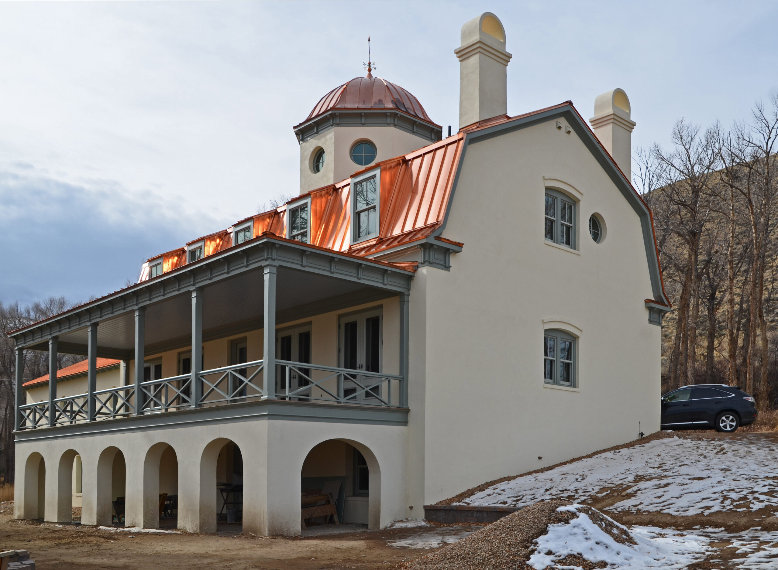 This impressive new mansion stands on a historic ranch property in Wyoming. It was commissioned by a family that loves art and beauty, desiring to live a traditional rural life without losing touch with culture. While designing this highly customized house, Andrew looked to the illustrious gilded-age mansions of the American West, and to the exuberant beauty of the English baroque.